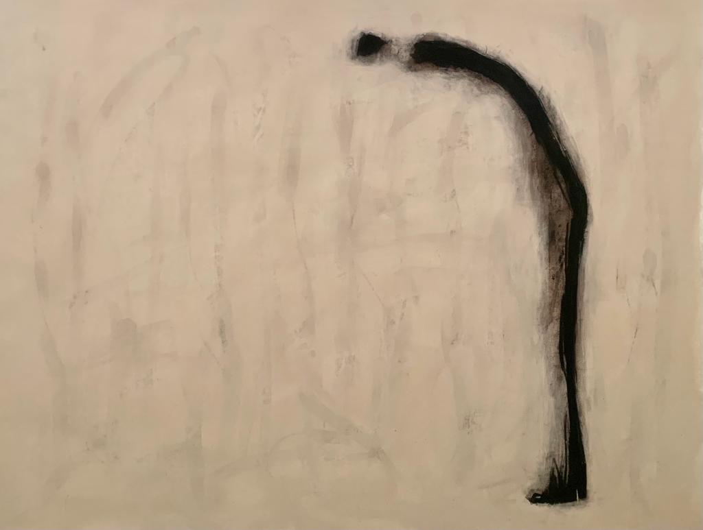 Riflessioni spontanee nascono dall’osservazione delle opere: cosa accade dentro lo spazio pittorico? Distanze prossemiche determinano percezioni visive sorprendenti; lo spazio che intercorre tra opera e spettatore è decisivo affinché le opere si manifestino agli occhi di chi osserva. […] L’alternanza tra opere in cui macchie in tinte scure occupano l’intera superficie – come i volti e la mano, simboli di riconoscimento e identità – e lavori nei quali, al contrario, lo spazio si apre a vuoti e sospensioni, rafforza la riflessione sul concetto di prossemica come condizione ambivalente: saturazione e compressione da un lato, distanza e isolamento dall’altro.»