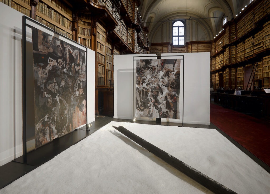 Come scrive Roberta Melasecca nel testo critico di presentazione al Salone Monumentale della Biblioteca Angelica di Roma nel 2019: «L’installazione Dimensioni parallele definisce un percorso di pazienza e costanza, di struggenti distacchi e crudi abbandoni, di cambiamenti lenti e inevitabili; racconta di storie che esigono forme di duttilità e che testimoniano passaggi mutevoli. L’artista, migrando da sé, inscena e costruisce un progetto di vita aperto: attraversa un mare di differenti accadimenti e, stanziando in una condizione di permanente erranza, approda in sabbie ancora fluttuanti. Il dittico, che fluidamente si staglia all’interno di una struttura determinata, è il viaggio catartico della propria coscienza che procede in un sistema ciclico di andata e ritorno, fondando le radici nel gioco degli opposti e dei contrasti; mentre dall’ombra di ricordi e memorie, l’artista trafigge il piano spaziale attraverso un asse lineare materico da cui si odono voci lontane di disperazioni e speranze. L’utilizzo dei due soli colori, bianco e nero, afferma l’evidenza di una dualità che non si risolve necessariamente in una serafica attestazione della realtà, ma accentua l’andare e il tornare verso i lidi dell’anima.»