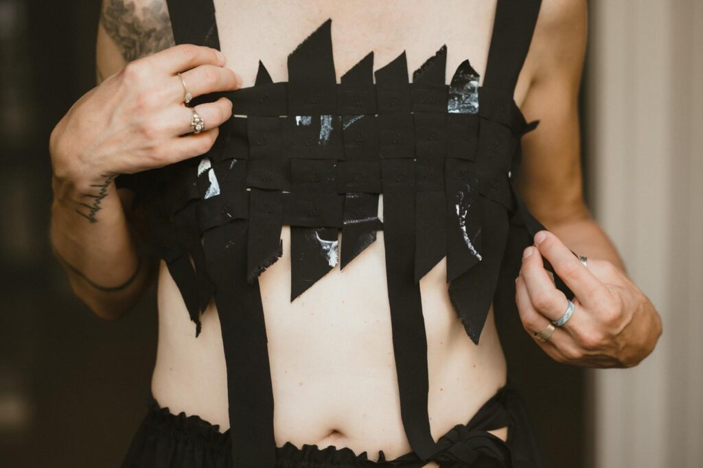 Alexandra Marie riesce così a trasformare la lettere di ogni artista in un’esperienza, dando vita a capi unici che diventano dispositivi di una narrazione intima. Chiasso Perduto è il contenitore dove il suo lavoro da vita a ibridi tra arte e moda, fondendo linguaggi in una sorta di attraversamento reciproco, dove l’abito ci permette di incontrare noi stessi e anche gli altri.